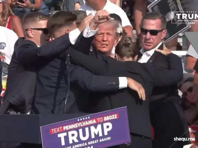 特朗普在集会现场被刺杀,所幸子弹只是打中了耳朵,特朗普本人并没有受重伤。