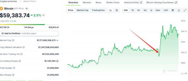 比特币价格在事件发生后暴涨,现在已经接近6万美金大关。